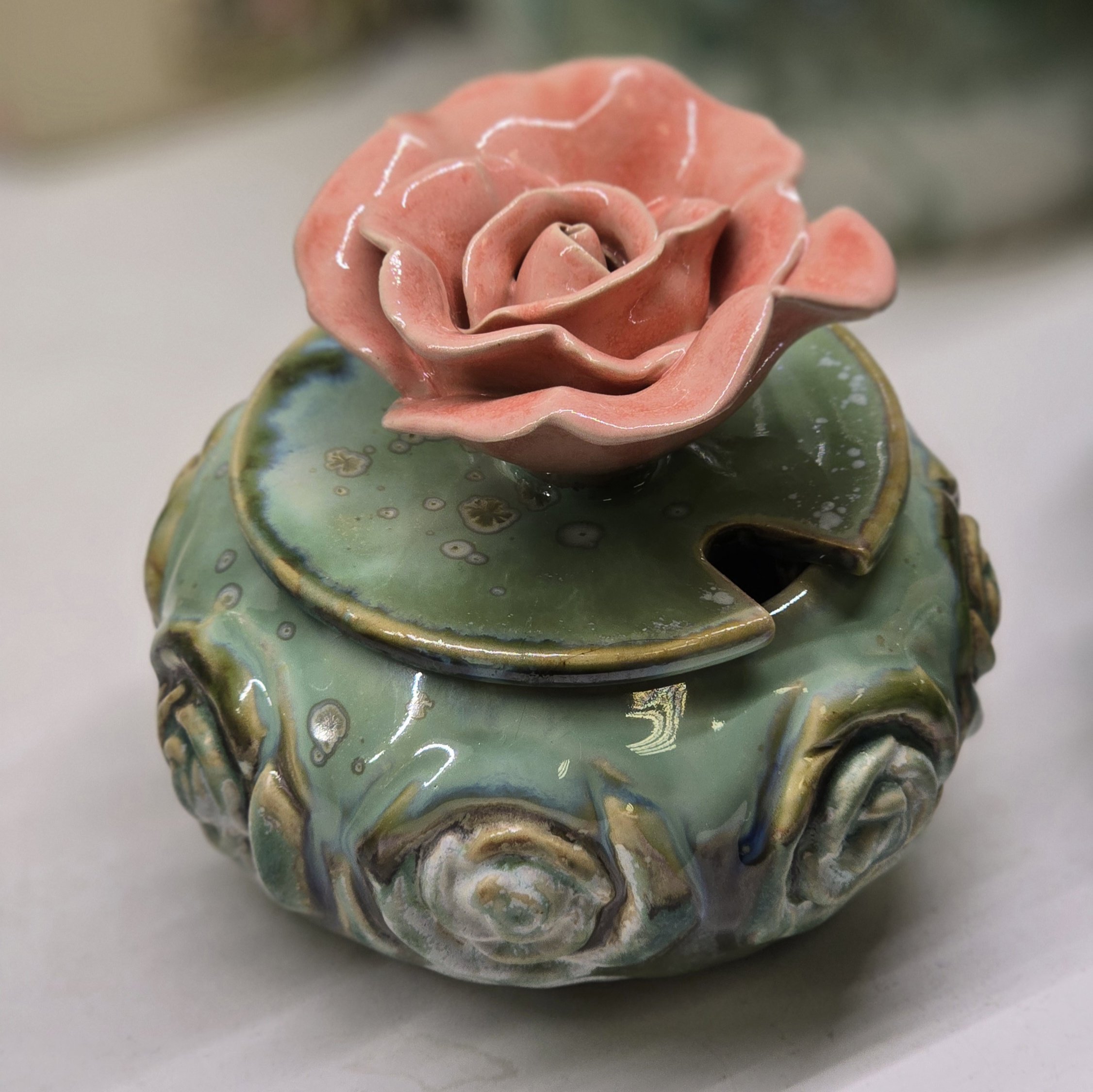 Käsitsi meisterdatud ja kuni 8 erineva glasuurikihiga iga eksemplar on ainulaadne.