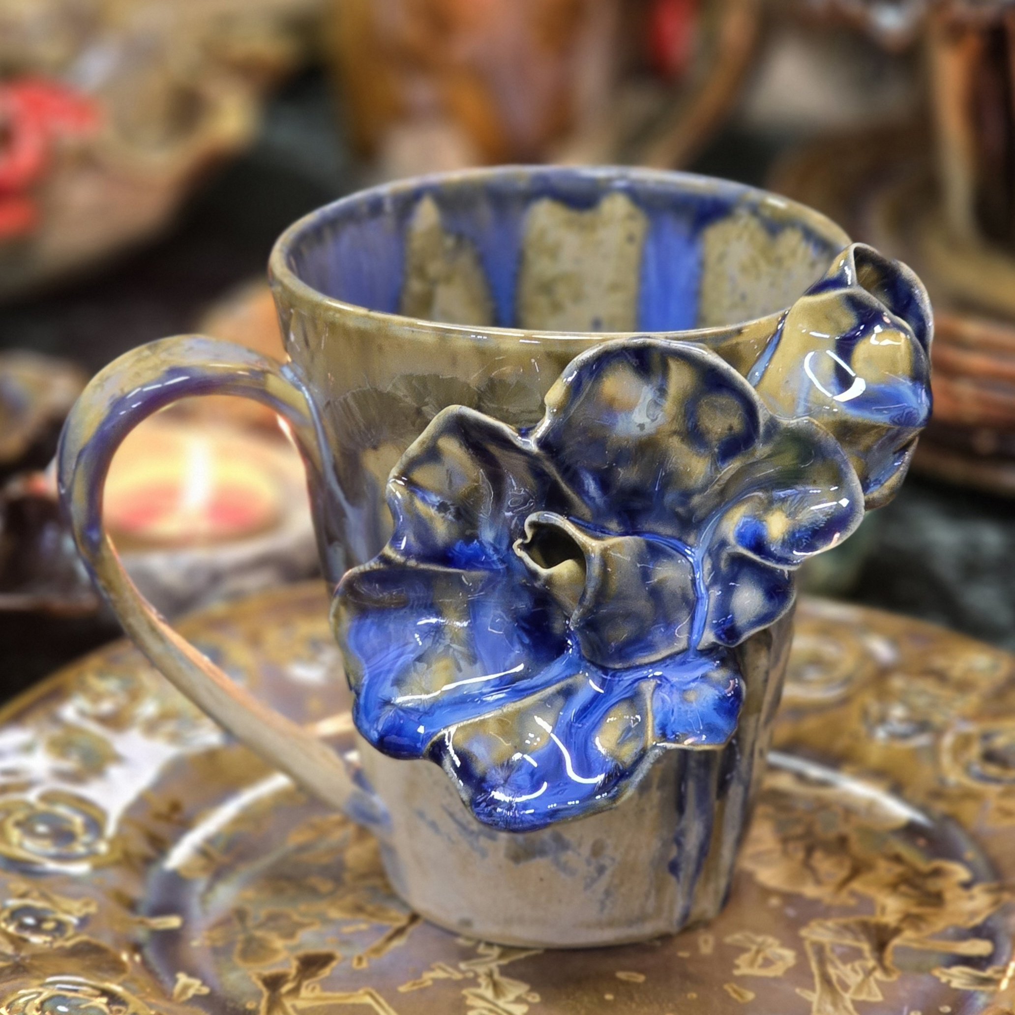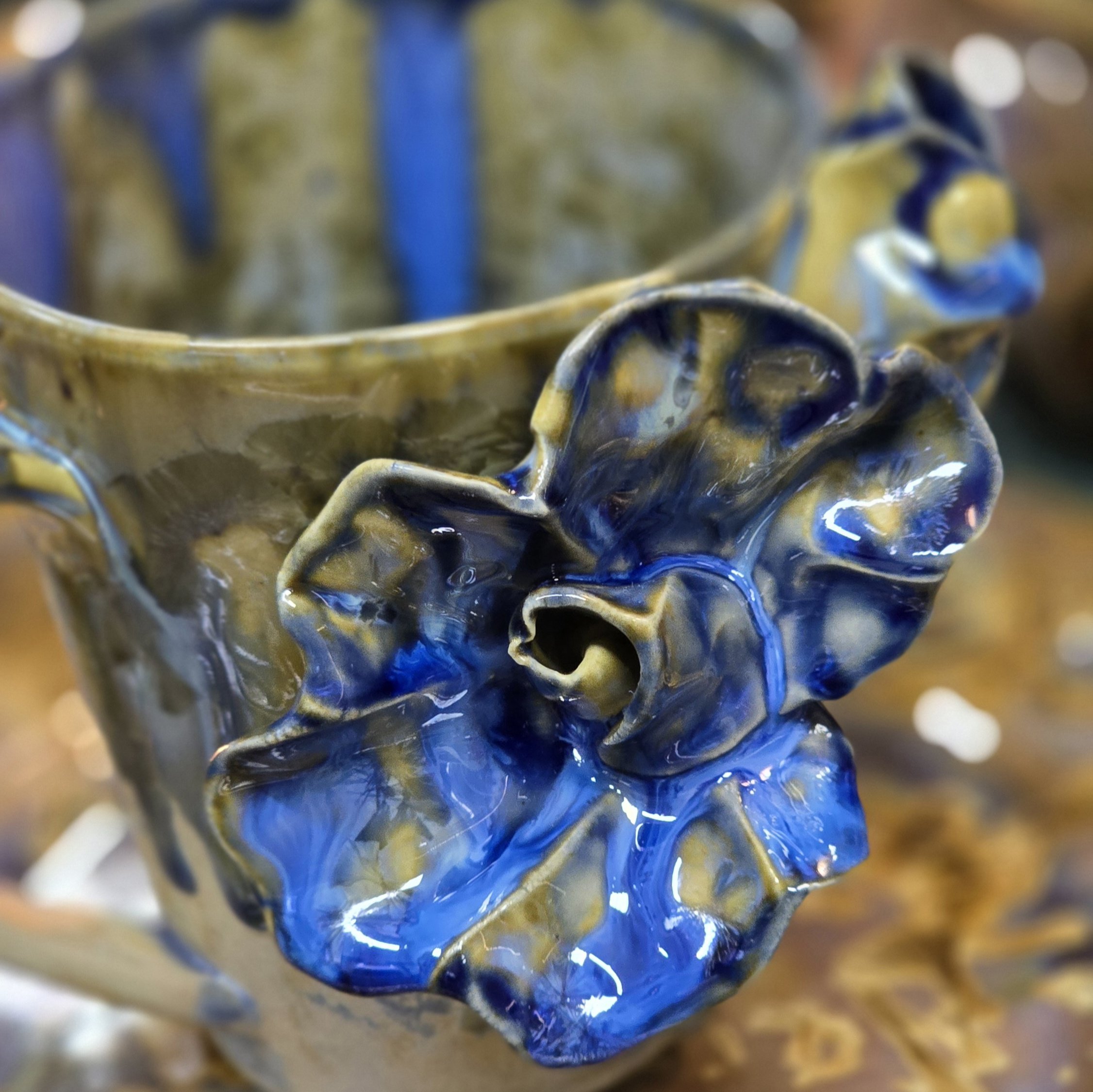 Savilehe tehnikas meisterdatud tass, millele on lisatud käsitsi voolitud roosiõis või mitu. Iga tass on unikaalne ja valmib ainueksemplarina. Omapära ning karakteri toome tassidel esile kuni 8 erineva glasuurikihiga.