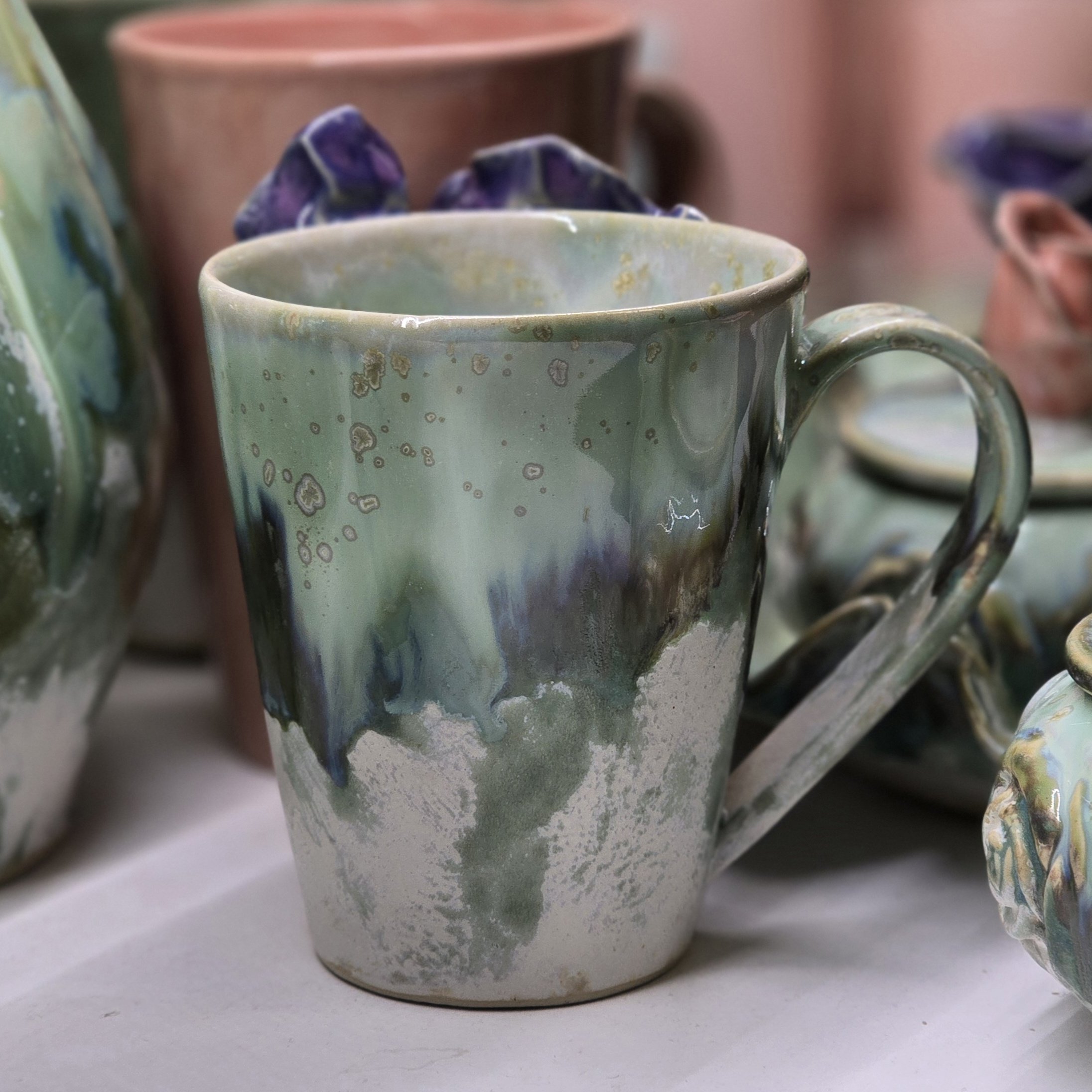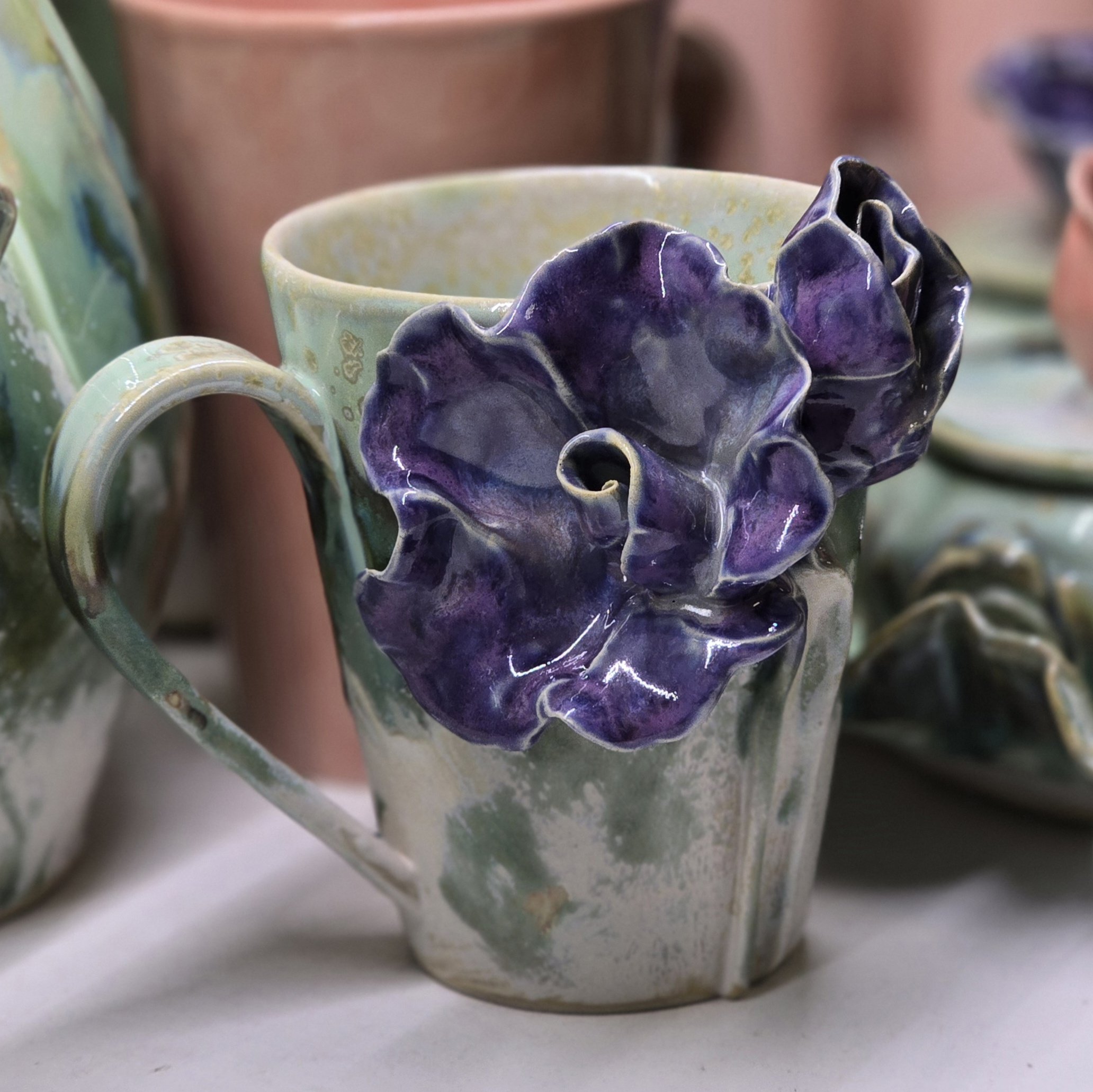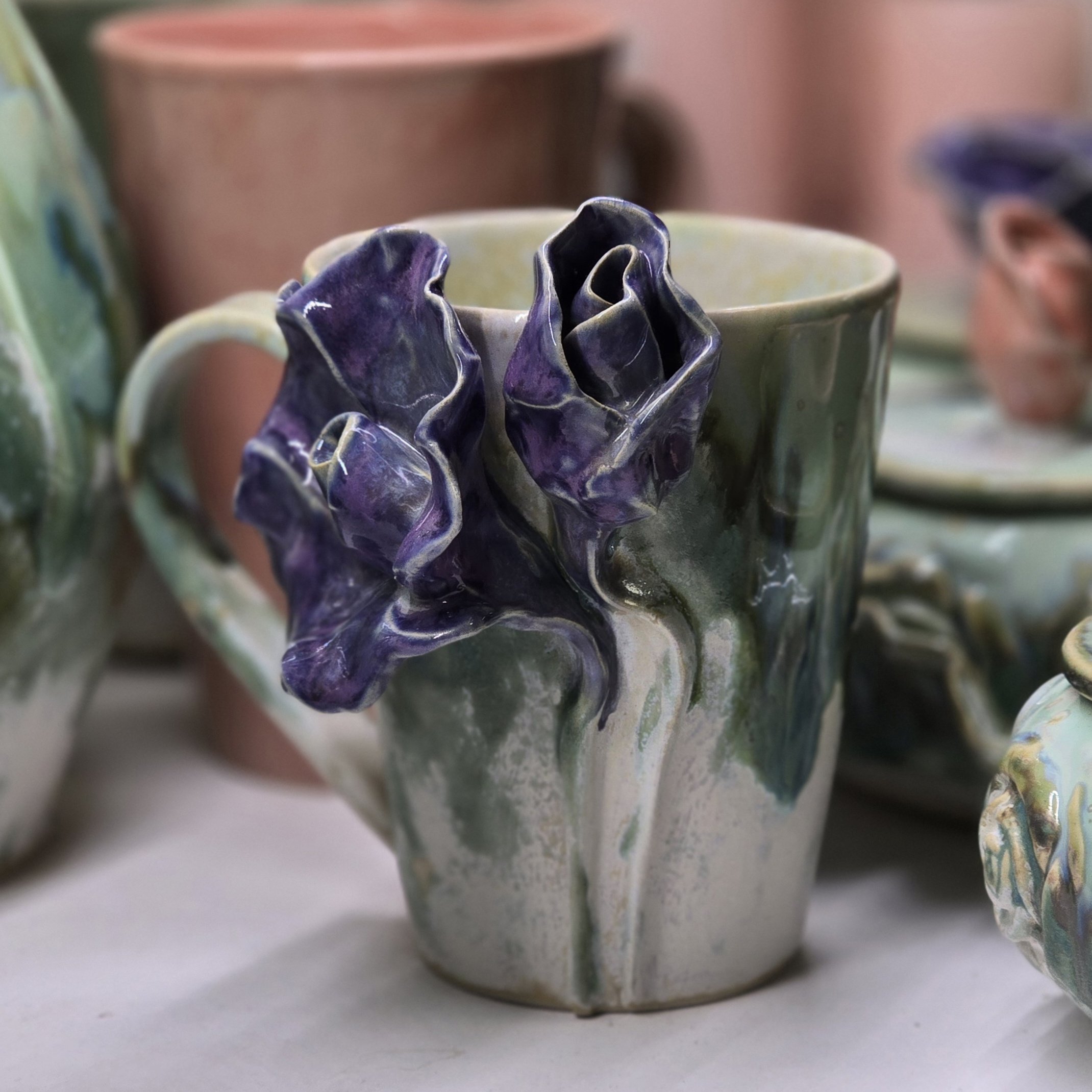 Savilehe tehnikas meisterdatud tass, millele on lisatud käsitsi voolitud roosiõis või mitu. Iga tass on unikaalne ja valmib ainueksemplarina. Omapära ning karakteri toome tassidel esile kuni 8 erineva glasuurikihiga.