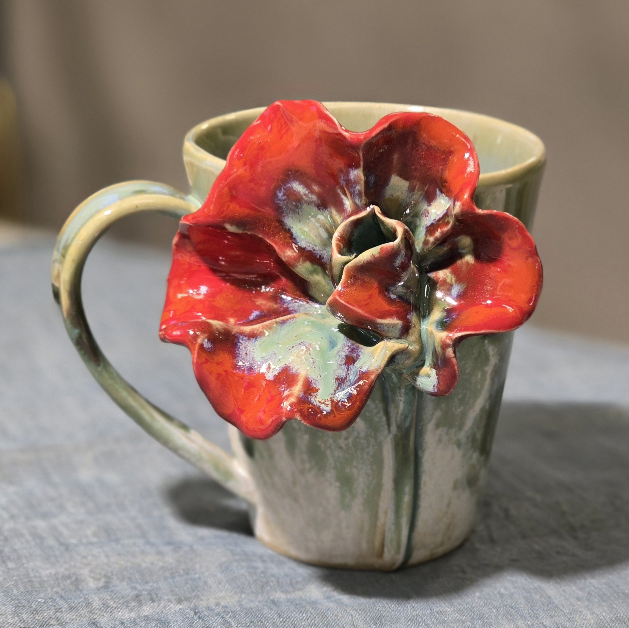 Savilehe tehnikas meisterdatud tass, millele on lisatud käsitsi voolitud roosiõis või mitu. Iga tass on unikaalne ja valmib ainueksemplarina. Omapära ning karakteri toome tassidel esile kuni 8 erineva glasuurikihiga.