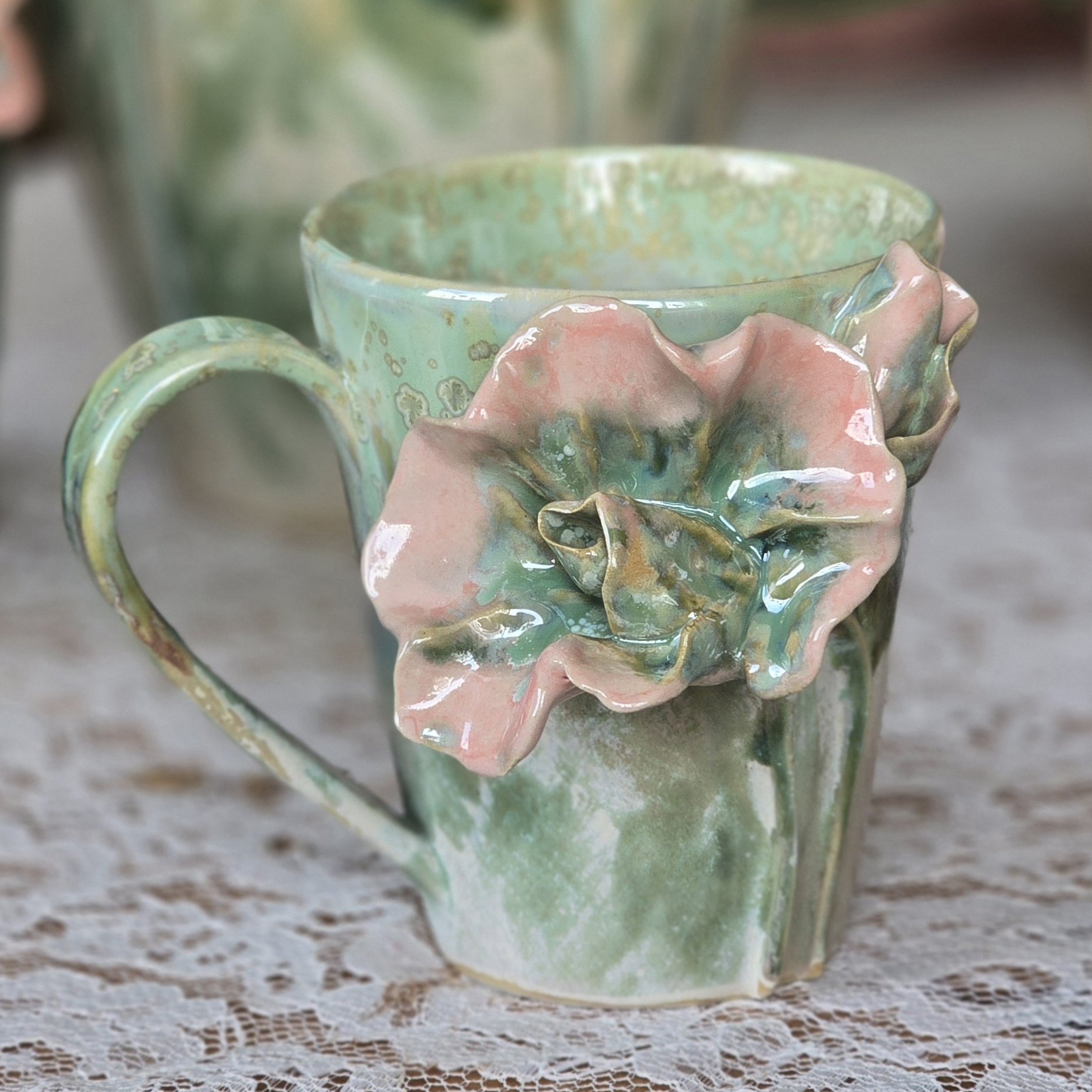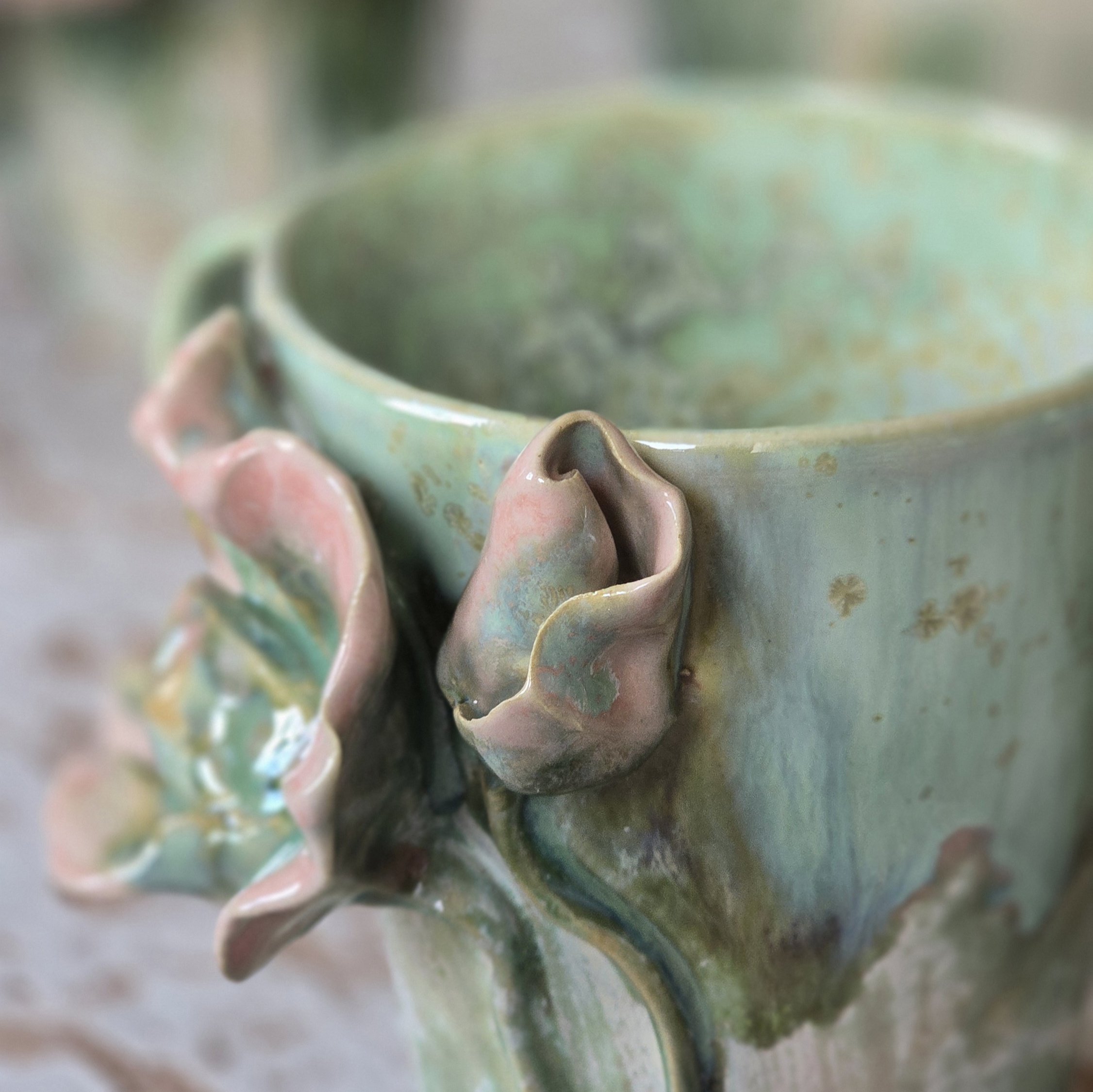 Käsitsi voolitud ja kuni 8 erineva kihiga glasuuritud toode, mille iga eksemplar on ainulaadne. Kõik lillemotiivid on kroonleht kroonlehe haaval voolitud, mis tagab iga tassi unikaalsuse.