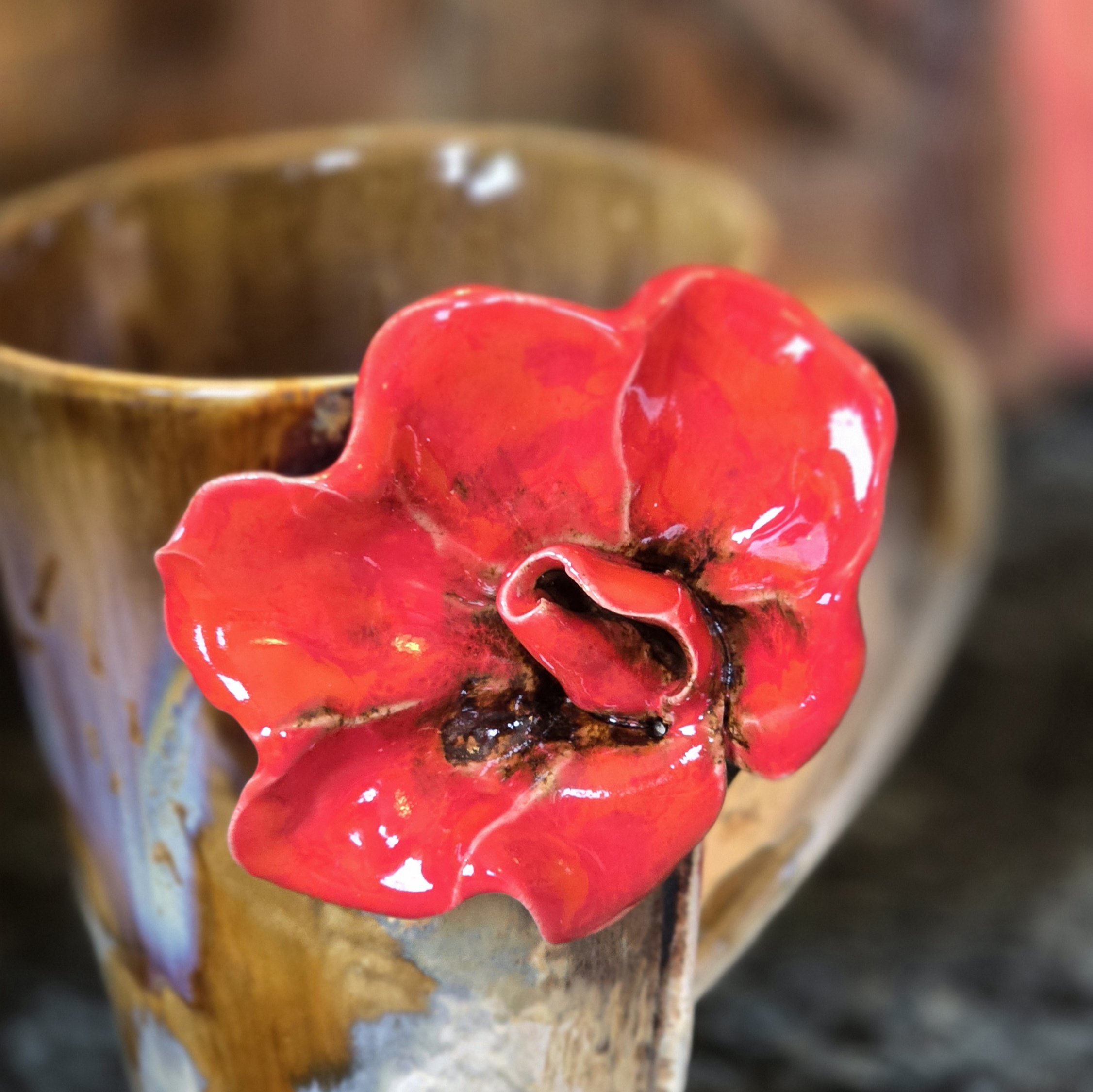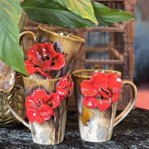 Savilehe tehnikas meisterdatud tass, millele on lisatud käsitsi voolitud roosiõis või mitu. Iga tass on unikaalne ja valmib ainueksemplarina. Omapära ning karakteri toome tassidel esile kuni 8 erineva glasuurikihiga.