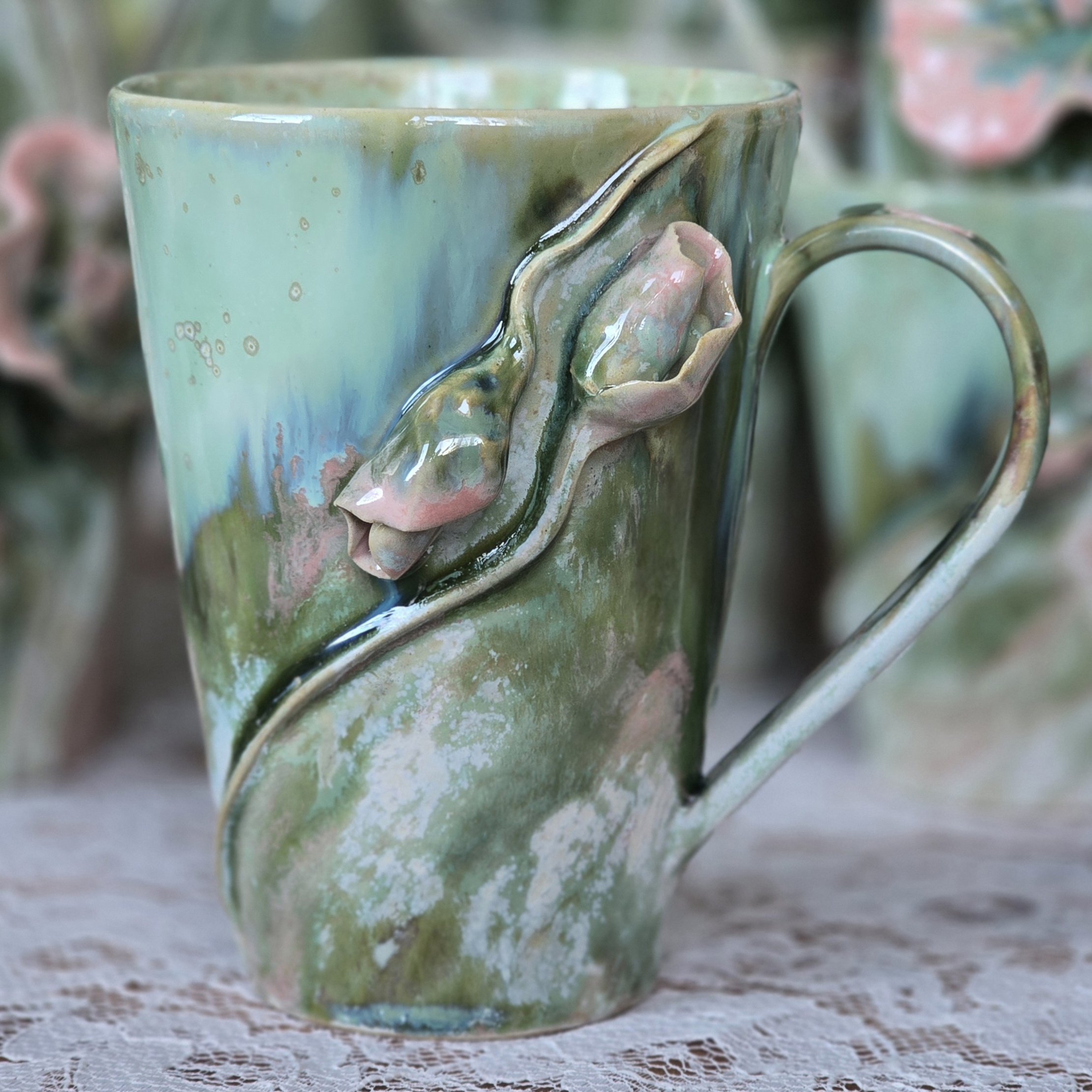 Käsitsi voolitud ja kuni 8 erineva kihiga glasuuritud toode, mille iga eksemplar on ainulaadne. Kõik lillemotiivid on kroonleht kroonlehe haaval voolitud, mis tagab iga tassi unikaalsuse.