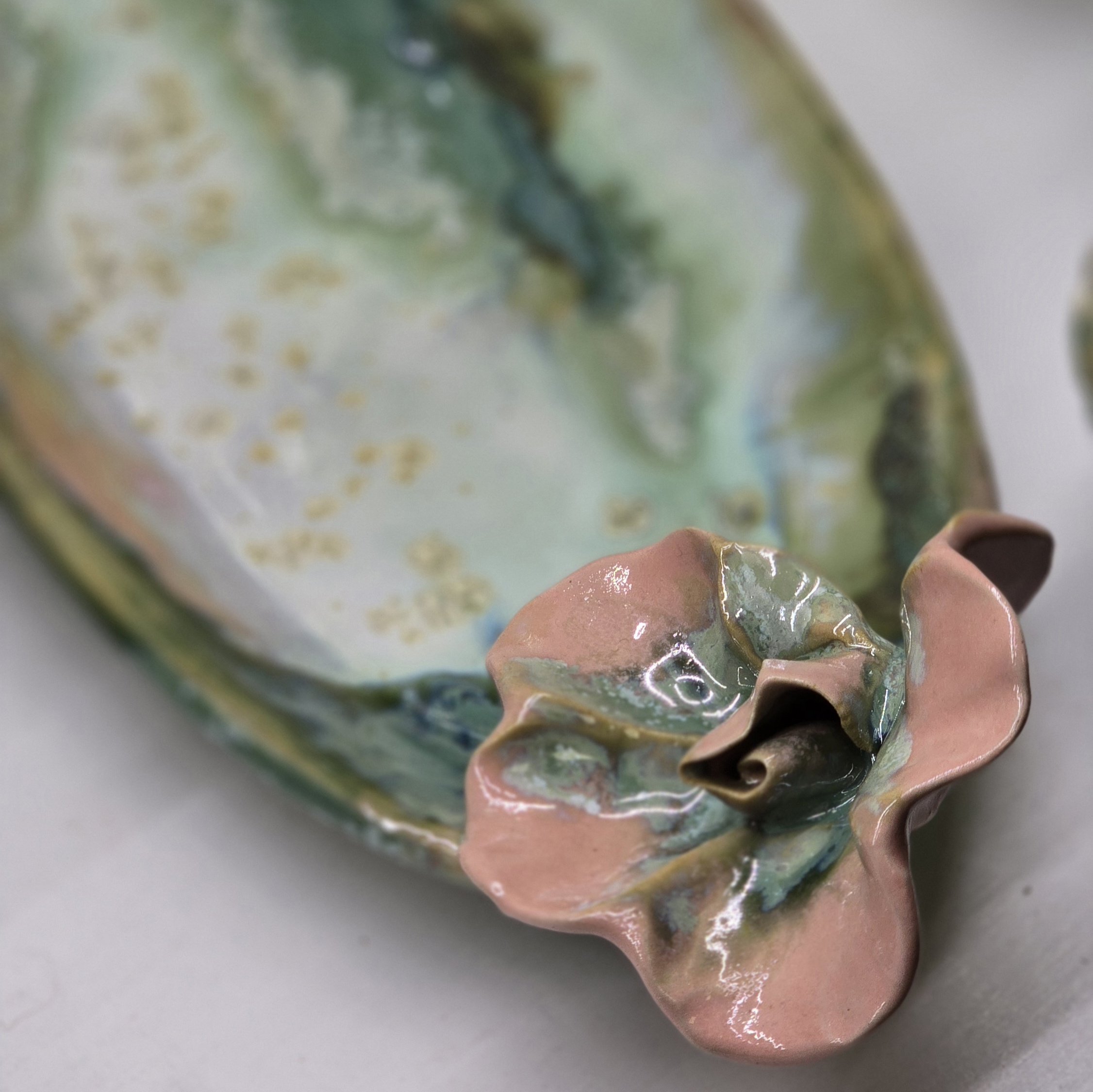 Savilehe tehnikas meisterdatud taldrik, millele on lisatud käsitsi voolitud roos või mitu. Iga taldrik on unikaalne ja valmib ainueksemplarina. Omapära ning karakteri toome taldrikutel esile kuni 8 erineva glasuuriga.